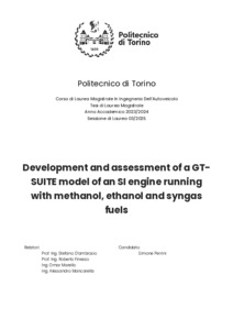 Development and assessment of a GT-SUITE model of an SI engine running with methanol, ethanol and syngas fuels.