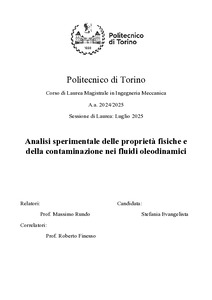 Analisi sperimentale delle proprietà fisiche e della contaminazione nei fluidi oleodinamici = Experimental Analysis of Physical Properties and Contamination in Hydraulic Fluids.