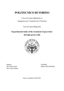 Studio sperimentale della depurazione di acqua grigia mediante muri verdi = Experimental study of the purification of greywater through green walls.