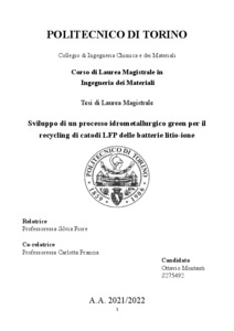 Sviluppo di un processo idrometallurgico green per il recycling di catodi LFP delle batterie litio-ione.