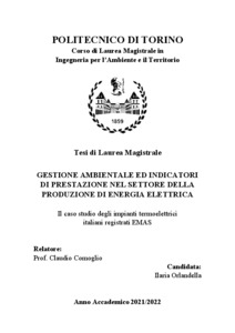 Gestione ambientale ed indicatori di prestazione nel settore della produzione di energia elettrica. Il caso studio degli impianti termoelettrici italiani registrati EMAS = Environmental management and performance indicators in energy production. The case study of Italian thermoelectric plants registered EMAS.