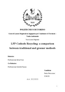 LFP Cathode Recycling: a comparison between traditional and greener methods.