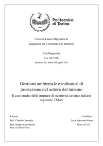 Gestione ambientale e indicatori di prestazione nel settore del turismo. Il caso studio delle strutture di ricettività turistica italiane registrate EMAS. = Environmental management and performance indicators in the tourism sector. The case study of EMAS registered Italian tourist accommodation facilities.