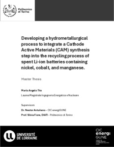 Developing a hydrometallurgical process to integrate a CAM synthesis step into the recycling process of spent Li-ion batteries containing nickel, cobalt and manganese.