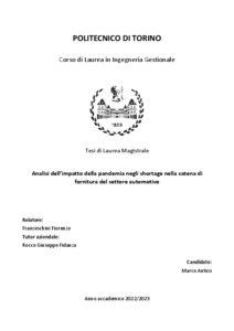 Analisi dell'Impatto della pandemia negli shortage nella catena di fornitura del settore automotive = Analysis of the Impact of Pandemic Shortages in the Automotive Supply Chain.