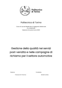 Gestione della qualità nei servizi post-vendita e nelle campagne di richiamo per il settore automotive = Quality management in after-sales services and recall campaigns for the automotive sector.