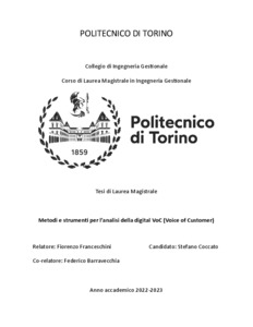 Rel. Fiorenzo Franceschini. Politecnico di Torino, Corso di laurea magistrale in Ingegneria Gestionale, 2023