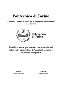 Pianificazione e gestione dei raw material nel settore dei prodotti per il "comfort termico e l'efficienza energetica" = Planning and management of raw materials in the field of "thermal comfort and energy efficiency" products.