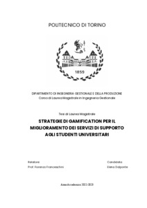 STRATEGIE DI GAMIFICATION PER IL MIGLIORAMENTO DEI SERVIZI DI SUPPORTO AGLI STUDENTI UNIVERSITARI = GAMIFICATION STRATEGIES FOR THE IMPROVEMENT OF SUPPORT SERVICES FOR UNIVERSITY STUDENTS.