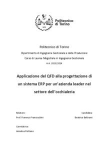 Applicazione del QFD alla progettazione di un sistema ERP per un’azienda leader nel settore dell’occhialeria = Application of QFD to design an ERP system for a leading eyewear company.