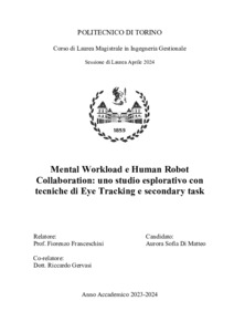 Mental workload e Human Robot Collaboration: uno studio esplorativo con tecniche di Eye Tracking e secondary task = Mental Workload and Human Robot Collaboration: an exploratory study with Eye Tracking techniques and secondary task.