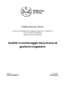 Qualità e monitoraggio dei processi di gestione magazzino = Quality and monitoring of warehouse management processes.