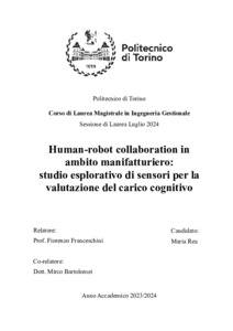 Human-robot collaboration in ambito manifatturiero: studio esplorativo di sensori per la valutazione del carico cognitivo = Human-robot collaboration in manufacturing: exploratory study of sensors for cognitive load assessment.