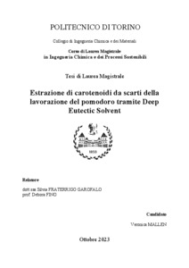 Estrazione di carotenoidi da scarti della lavorazione del pomodoro tramite Deep Eutectic Solvent = Extraction of carotenoids from tomato processing waste using Deep Eutectic Solvent.
