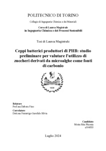 Ceppi batterici produttori di PHB: studio preliminare per valutare l’utilizzo di zuccheri derivati da microalghe come fonti di carbonio = PHB producing strains: a preliminary study to assess the utilization of microalgae derived sugars as carbon sources.