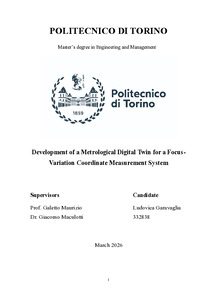 Development of a Metrological Digital Twin for a Focus-Variation Coordinate Measurement System.