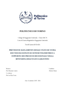 Previsione data-driven dello stato di usura dei veicoli dotati di sistemi telemetrici a supporto dei processi decisionali nella rivendita dell’usato garantito = Data-driven prediction of vehicle wear and tear with telemetry systems to support decision-making in the resale of guaranteed used vehicles.