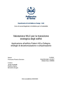 Valutazione WLC per la transizione ecologica degli edifici. Applicazione all’edificio Pattern HQ a Collegno, strategie di decarbonizzazione e compensazione = WLC assessment for the green transition of buildings. Application to the Pattern HQ building in Collegno, decarbonization and compensation strategies.