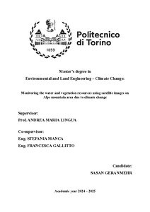 Sasan Geranmehr. Monitoring the water and vegetation resources using satellite images on Alps mountain area due to climate change. Rel. Andrea Maria Lingua, Stefania Manca, Francesca Gallitto. Politecnico di Torino, Corso di laurea magistrale in Ingegneria Per L'Ambiente E Il Territorio, 2025