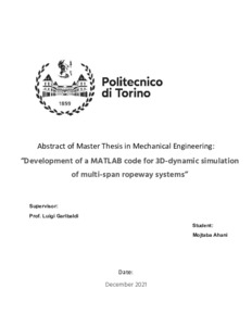 Development of a MATLAB code for 3D-dynamic simulation of multi-span ropeway system.
