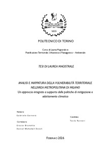 Analisi e mappatura della vulnerabilità territoriale nell’Area Metropolitana di Milano. Un approccio integrato a supporto delle politiche di mitigazione e adattamento climatico. = Analysis and mapping of territorial vulnerability in the Milan Metropolitan Area. An integrated approach to support climate mitigation and adaptation policies.