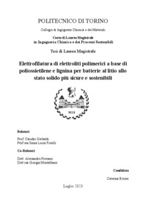 Elettrofilatura di elettroliti polimerici a base di poliossietilene e lignina per batterie al litio allo stato solido più sicure e sostenibili = Electrospinning of polyethylene oxide and lignin-based polymer electrolytes for safer and more sustainable solid-state lithium batteries.