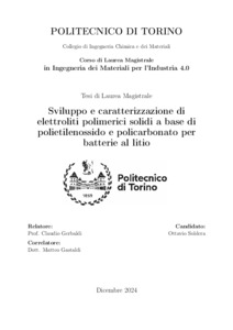 Sviluppo e caratterizzazione di elettroliti polimerici solidi a base di polietilenossido e policarbonato per batterie al litio = Development and characterization of solid polymer electrolytes based on polyethylene oxide and polycarbonate for lithium batteries.