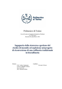 Ingegneria della sicurezza e gestione del rischio di incendio ed esplosione nel progetto di riconversione di una raffineria tradizionale in bioraffineria = Safety engineering and fire and explosion risk management for the conversion of a conventional refinery into a biorefinery.