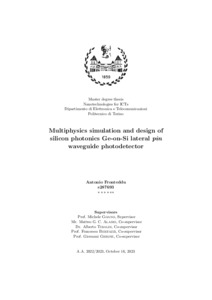 Multiphysics simulation and design of silicon photonics Ge-on-Si lateral pin waveguide photodetector.