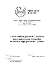 A new code for geothermal potential assessment: power production in medium-high geothermal systems.