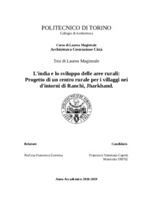 L'india e lo sviluppo delle aree rurali: Progetto di un centro sociale rurale per i villaggi nei d'intorni di Ranchi, Jharkhand = India and the development of rural areas: Project of a rural center for the villages in the surroundings of Ranchi, Jharkhand.