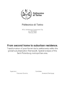 From second home to suburban residence. Transformation of post-soviet dacha settlements within global suburbanization framework. Spatial analysis of Saint Petersburg metropolitan area.