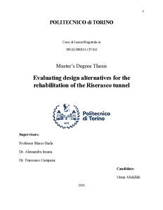 Rel. Marco Barla, Alessandra Insana, Francesco Campana. Politecnico di Torino, Corso di laurea magistrale in Ingegneria Civile, 2026