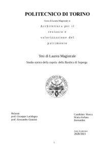 Studio statico della cupola della Basilica di Superga = Static study of the dome of the Basilica of Superga.