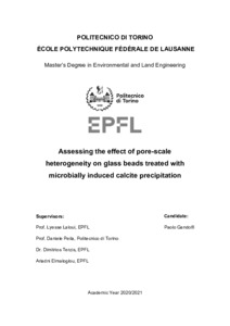 Assessing the effect of pore-scale heterogeneity on glass beads treated with microbially induced calcite precipitation.
