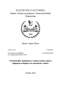 Studio dell’effetto di un processo di adattamento strutturato sulla suscettibilità alla Visually Induced Motion Sickness in Realtà Virtuale = Investigation of the Effect of a Structured Habituation Process on Susceptibility to Visually Induced Motion Sickness in Virtual Reality.