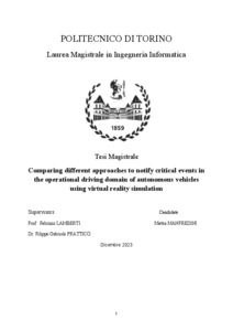 Interfacce Uomo-macchina per Veicoli a Guida Autonoma: Studio della User Experience in Scenario Virtuali = Human-Machine Interfaces for Autonomous Vehicles: Study of the User Experience in Virtual Scenarios.