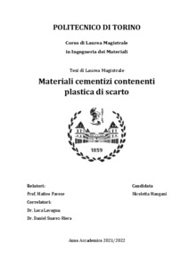 Materiali cementizi contenenti plastica di scarto = Cementitious materials containing waste plastics.