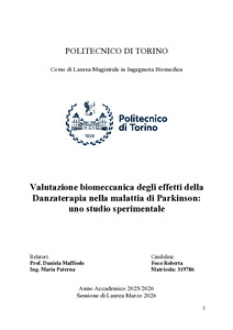 Valutazione biomeccanica degli effetti della Danzaterapia nella malattia di Parkinson: uno studio sperimentale = Biomechanical Assessment of Dance Therapy Effects in Parkinson's disease: an Experimental Study.