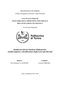 Qualità dei dati nei database bibliometrici: Analisi empirica e classificazione degli errori più rilevanti = Data quality in bibliometric databases: Empirical analysis and classification of the most relevant errors.