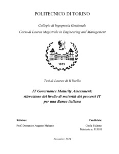 IT Governance Maturity Assessment: rilevazione del livello di maturità dei processi IT per una Banca italiana = IT Governance Maturity Assessment: assessing the level of maturity of IT processes for an Italian Bank.