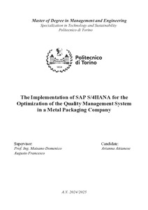 The Implementation of SAP S/4HANA for the Optimization of the Quality Management System in a Metal Packaging Company.
