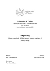 4D printing: nuove tecnologie di fabbricazione additiva applicate al jewelry design = 4D printing: new additive manufacturing technologies for jewelry design.