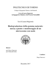 Biodegradazione della gomma naturale: messa a punto e monitoraggio di un microcosmo con suolo = Natural rubber biodegradation: set-up and monitoring of a soil microcosm.
