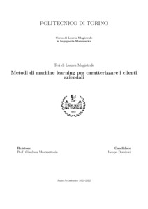 Metodi di machine learning per caratterizzare i clienti aziendali = Machine learning methods to characterize business customers.