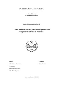 Teoria dei valori estremi per l’analisi spaziale delle precipitazioni estreme in Piemonte = Extreme value theory for the spatial analysis of extreme rainfall in Piedmont.