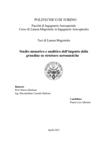 Studio numerico e analitico dell'impatto della grandine su strutture aeronautiche.