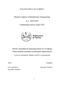 Electro-mechanical characterization of a walking beam transfer machine for flat glass applications Focus on mechanical validation and PLC programming.