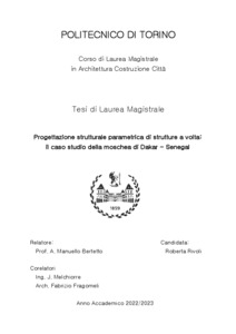 Progettazione strutturale parametrica di strutture a volta: il caso studio della moschea di Dakar - Senegal = Parametric structural design of vaulted structures: the case study of the mosque in Dakar - Senegal.