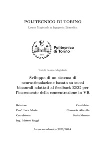 Sviluppo di un sistema di neurostimolazione basato su suoni binaurali adattati al feedback EEG per l'incremento della concentrazione in VR = Development of a neurostimulation system based on adaptive binaural beats to EEG feedback for improving concentration in VR.